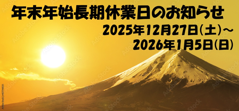 平素は格別のお引き立てを賜り厚く御礼申し上げます。さて、誠に勝手ではこざいますが、当社の年末年始長期休業日につきまして下記の通り休業とさせていただきますので、ご案内申し上げます。皆さまにはご不便をお掛けいたしますが、ご理解賜りますようお願い申し上げます。 年末年始長期休業日 2025年12月27日(土)~ 2026年1月5日(月)まで 2026年1月6日(火)より、通常業務を開始いたします。休業中のお問い合せにつきましては、2026年1月6日(火)以降に順次対応させていただきます。 … [もっと読む...] about 年末年始長期休業日のお知らせ